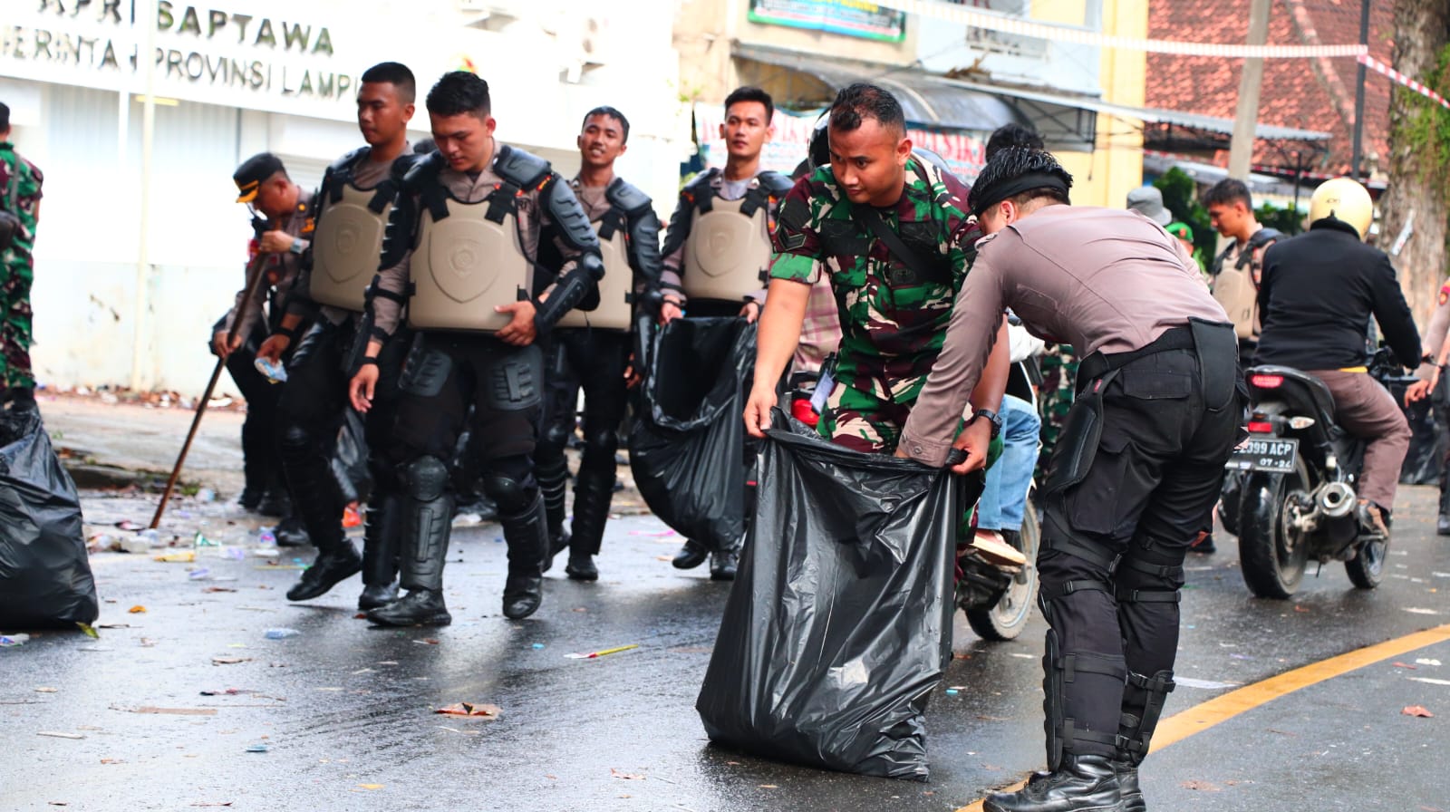 Berselang 20 menit pasca pembubaran, tepatnya pukul 14.30 WIB, kedua perwira tersebut terlihat memunguti sampah dan sisa-sisa poster yang berserakan. Aksi spontan ini langsung diikuti oleh personel gabungan TNI dari Kodim 0410/KBL dan Polri dari Polresta Bandar Lampung. Suasana tegang berubah menjadi gotong royong memulihkan keadaan.