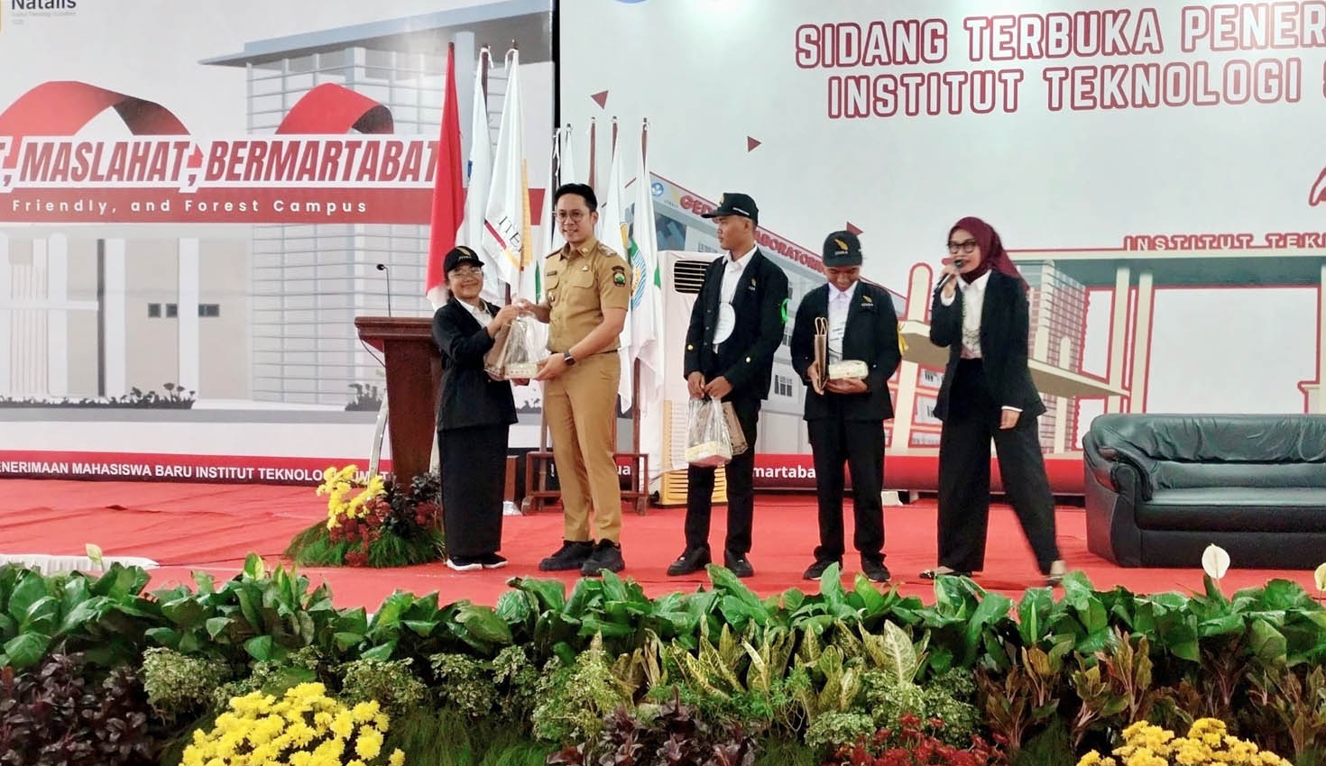 Sidang penerimaan mahasiswa baru ITERA tahun ini diwarnai antusiasme tinggi. Pertanyaan dari mahasiswa tidak hanya datang dari peserta asal Lampung, tetapi juga dari luar daerah, termasuk Provinsi Jambi, yang aktif berdialog dengan Bupati Egi. (Kmf)
