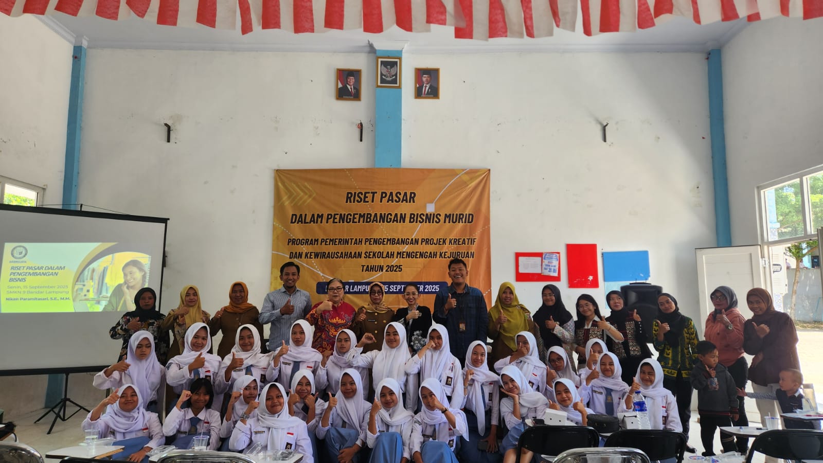 BANDAR LAMPUNG – Dosen dan Sekretaris Prodi Bisnis Digital Institut Informatika dan Bisnis (IIB) Darmajaya Niken Paramitasari, S.E., M.M. membekali puluhan pelajar SMKN 9 Bandar Lampung dalam “Workshop Riset Pasar” Program Bantuan Pemerintah Proyek Kreatif Kewirausahaan Direktorat SMK Kementerian Pendidikan Dasar dan Menengah Republik Indonesia tahun 2025 selama dua hari (Senin – Selasa (15-16/9/25).