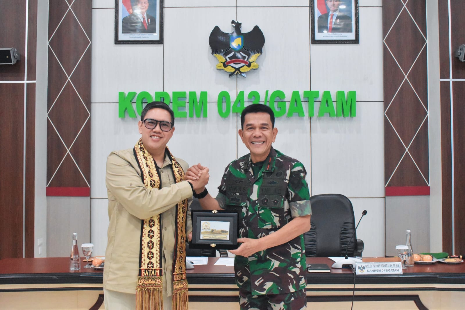 LAMPUNG – Komandan Korem 043/Garuda Hitam, Brigjen TNI Rikas Hidayatullah, S.E., M.M., menerima kunjungan kerja anggota Komisi I DPR RI yang dipimpin oleh Dr. Dave Akbarshah Fikarno Laksono, M.E., bertempat di Makorem 043/Gatam, Jalan Teuku Umar, Penengahan, Bandar Lampung pada Jumat, 04-Juli-2025.