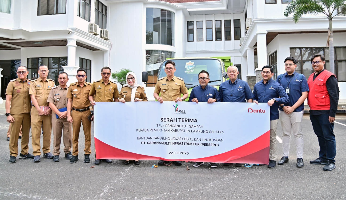 KALIANDA – Pemerintah Kabupaten (Pemkab) Lampung Selatan menerima bantuan truk pengangkut sampah dari PT Sarana Multi Infrastruktur (Persero) yang berkolaborasi dengan Yayasan Bantu, melalui program Corporate Social Responsibility (CSR).