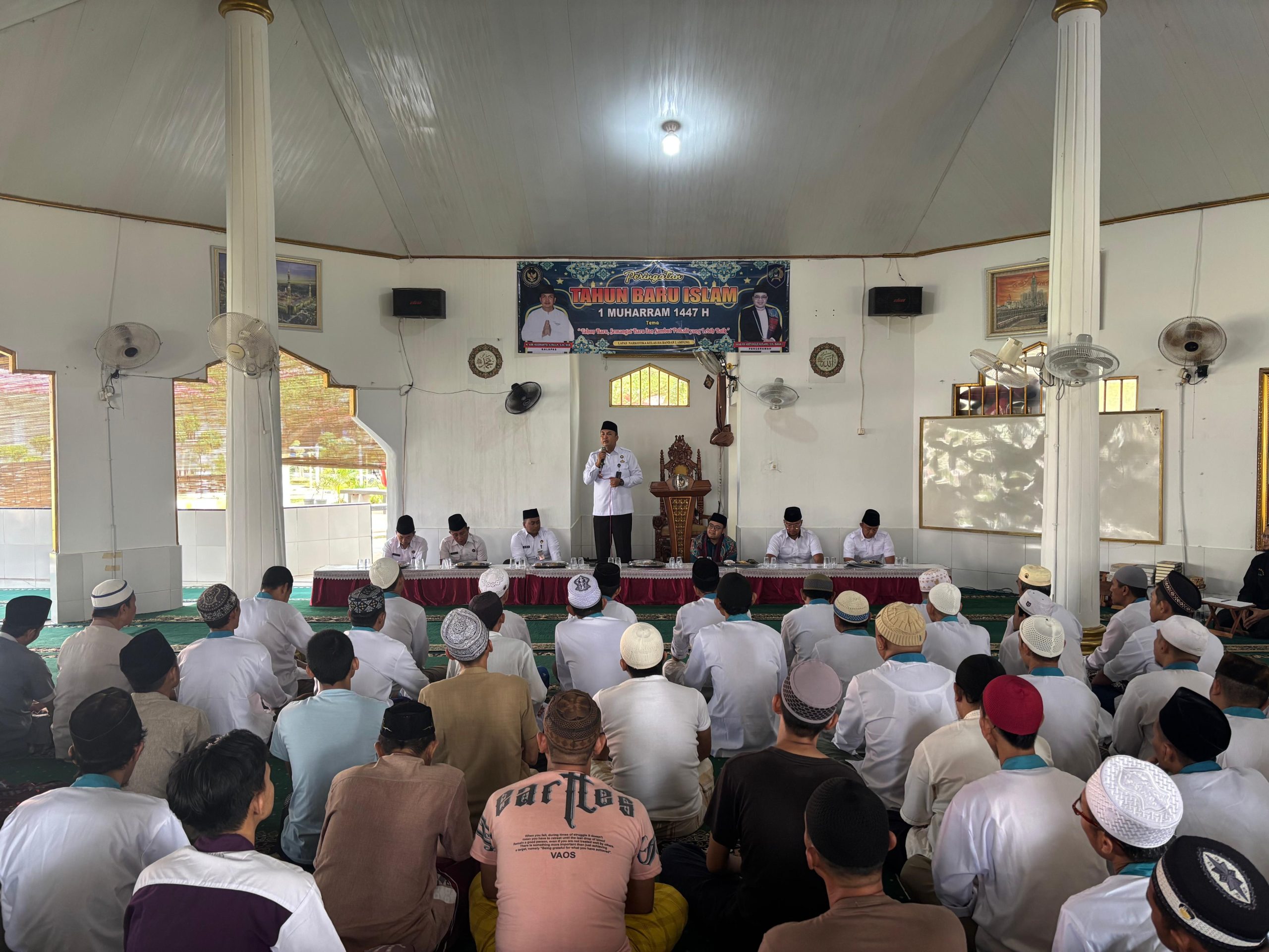 BANDAR LAMPUNG – Dalam rangka menyambut Tahun Baru Islam 1 Muharram 1447 H, Lapas Narkotika Kelas IIA Bandar Lampung menggelar kegiatan keagamaan bertajuk “Tahun Baru, Semangat Baru Menuju Pribadi yang Lebih Baik”, Rabu (25/6/2025), bertempat di Masjid Al-Hidayah Lapas Narkotika Bandar Lampung.