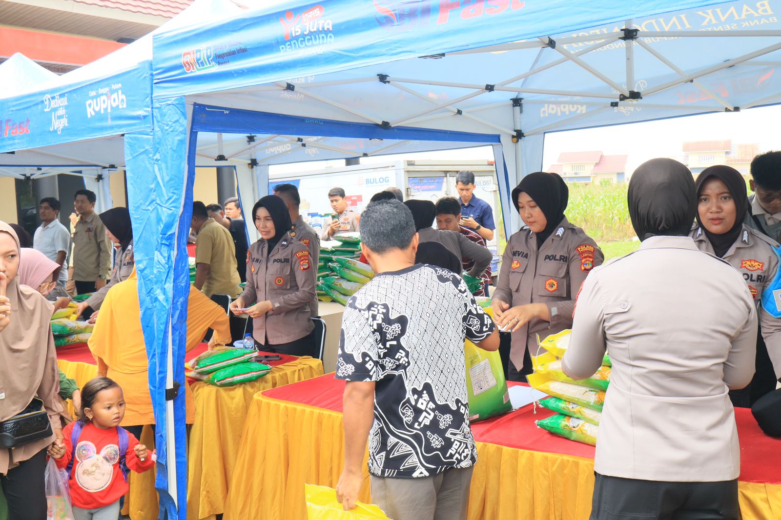 Kegiatan ini menyediakan 2 ton beras premium merk SPHP atau 400 karung beras 5kg dengan harga khusus di bawah Harga Eceran Tertinggi (HET).