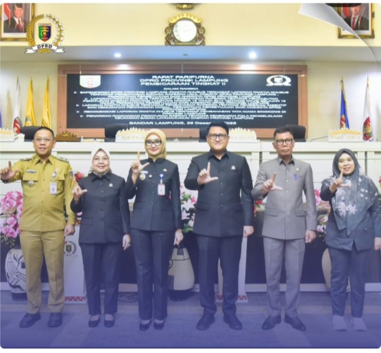 Bandar Lampung — Dewan Perwakilan Rakyat Daerah (DPRD) Provinsi Lampung menyelenggarakan Rapat Paripurna di Ruang Sidang DPRD Provinsi Lampung, Senin (29/12/2025). Rapat Paripurna dipimpin langsung oleh Ketua DPRD Provinsi Lampung A. Giri Akbar, SE, MM, serta dihadiri Wakil Gubernur Lampung dr. Jihan Nurlela, MM, unsur pimpinan dan Anggota DPRD Provinsi Lampung, serta jajaran Forum Koordinasi Pimpinan Daerah (Forkopimda) Provinsi Lampung.Agenda Rapat Paripurna meliputi Pembicaraan Tingkat II penyampaian laporan Panitia Khusus/Badan Pembentukan Peraturan Daerah (Bapemperda) DPRD Provinsi Lampung terhadap pembahasan enam Rancangan Peraturan Daerah (Raperda) usul inisiatif DPRD Provinsi Lampung, yang disampaikan oleh Chondro Wati, SE, M.Si, dan dilanjutkan dengan permintaan persetujuan Anggota DPRD Provinsi Lampung. Dalam rangkaian agenda tersebut, pembacaan konsep keputusan DPRD disampaikan oleh Sekretaris DPRD Provinsi Lampung Descatama Paksi Moeda, ST., SE., MM, serta dilanjutkan dengan sambutan Gubernur Lampung.Selanjutnya, Rapat Paripurna juga membahas Pembicaraan Tingkat II terhadap Raperda tentang Pencabutan Peraturan Daerah Provinsi Lampung Nomor 18 Tahun 2014 tentang Wajib Belajar 12 Tahun serta Raperda tentang Pemberian Insentif dan Kemudahan Penanaman Modal, yang masing-masing disertai laporan Panitia Khusus, permintaan persetujuan Anggota DPRD Provinsi Lampung, pembacaan konsep keputusan DPRD, dan sambutan Gubernur Lampung.Pada kesempatan yang sama, DPRD Provinsi Lampung menyampaikan rekomendasi laporan Panitia Khusus terhadap pembahasan tata niaga singkong di Provinsi Lampung, yang ditindaklanjuti dengan penetapan konsep keputusan DPRD. Selain itu, Rapat Paripurna juga menetapkan penarikan Rancangan Peraturan Daerah tentang Penerapan Pola Pengelolaan Keuangan Badan Layanan Umum Daerah (BLUD) Provinsi Lampung.Wakil Gubernur Lampung dr. Jihan Nurlela, MM, mewakili Gubernur Lampung, menegaskan komitmen Pemerintah Provinsi Lampung untuk mempercepat pelaksanaan kebijakan dan peraturan daerah agar memberikan manfaat nyata bagi masyarakat. Provinsi Lampung juga menekankan pentingnya sinergi dan koordinasi antara pemerintah daerah dan DPRD dalam setiap perencanaan dan pengambilan kebijakan guna mendukung pembangunan daerah serta pertumbuhan ekonomi yang berkelanjutan di Provinsi Lampung.