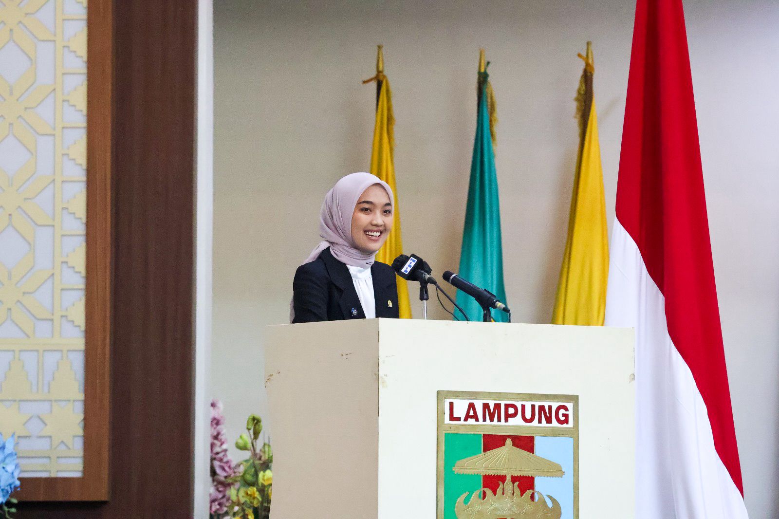 Bandar Lampung — Wakil Gubernur Lampung, Jihan Nurlela menghadiri Rapat Paripurna DPRD Provinsi Lampung bertempat di Ruang Sidang DPRD Provinsi Lampung, Selasa (01/07/2025).