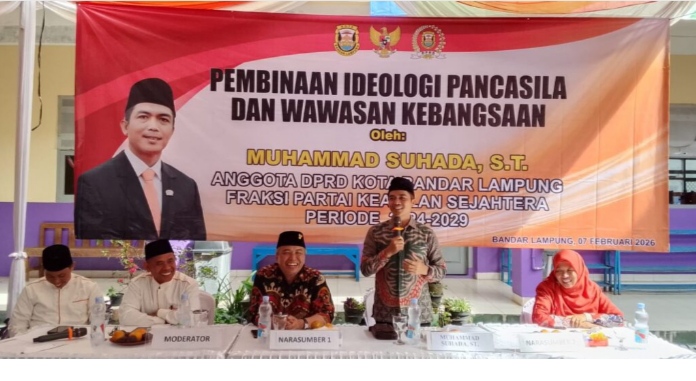 Anggota DPRD Kota Bandar Lampung dari Fraksi PKS, Muhammad Suhada, menggelar kegiatan Sosialisasi Pembinaan Ideologi Pancasila dan Wawasan Kebangsaan (PIP-WK) di Kelurahan Segala Mider, Kecamatan Tanjung Karang Barat, Sabtu 07 februari 2026.