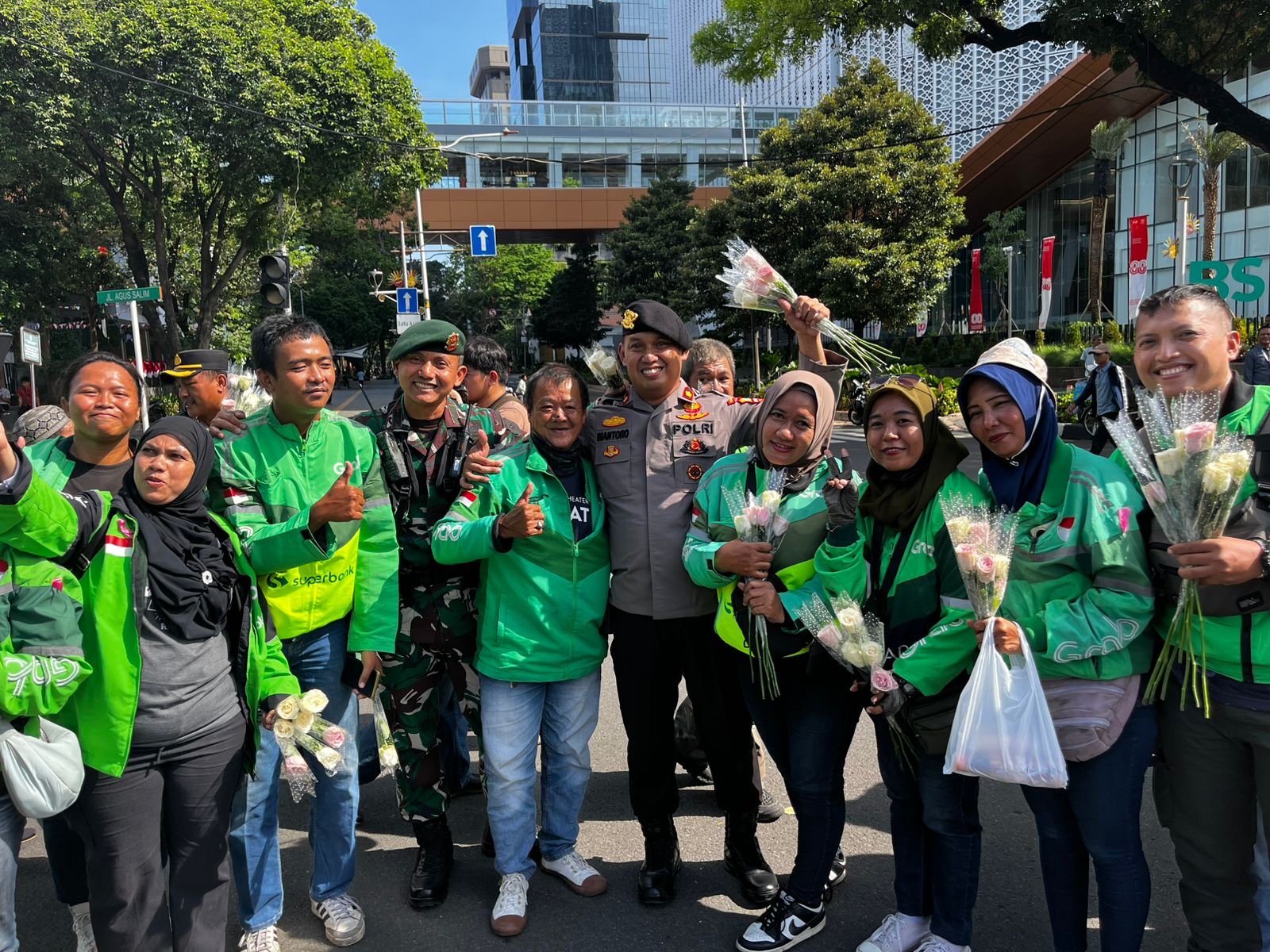 Kegiatan yang dimulai pada pukul 14.00 WIB ini bertujuan untuk menunjukkan komitmen komunitas ojol sebagai bagian dari masyarakat yang cinta damai dan mendukung kebangkitan Indonesia. Dalam aksi tersebut, para pengemudi ojol membawa spanduk dan megafon, serta membagikan bunga mawar sebagai simbol perdamaian dan kasih sayang.